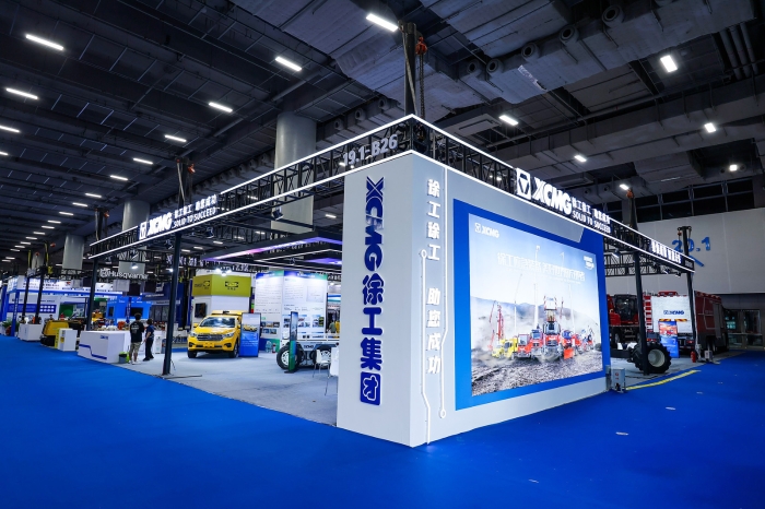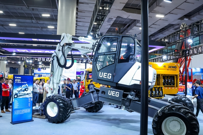 展会现场,bbin宝盈ET121活动式挖掘机与XUV25陪同机械人化身“机械明星”,观众直呼“《流浪地球》照进现实!”
