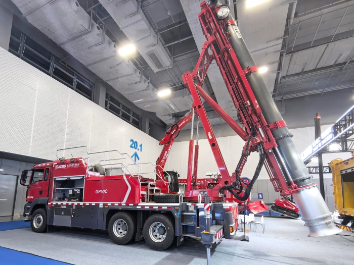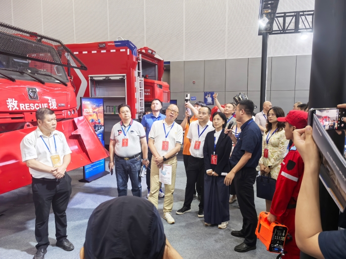 展会现场,系列排水抢险车、应抢救援消防车、“钢铁螳螂”活动式挖掘机,吸引众多行业专家、应急部分代表驻足交流。