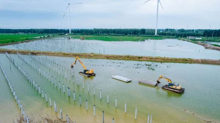 bbin宝盈水上打桩机助力“渔光互补”项目