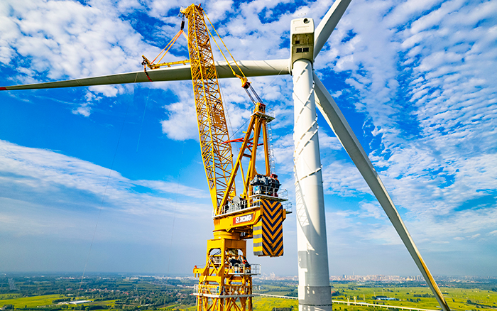 不惧挑战,bbin宝盈 XGL3300-220S 展现出 “四冠王者” 的硬核实力,轻松将重达160余吨的机舱稳步提升,精准送达185米高空,完成叶片与轮毂的精准对接,整套流程一气呵成。