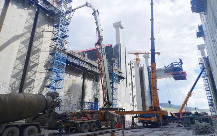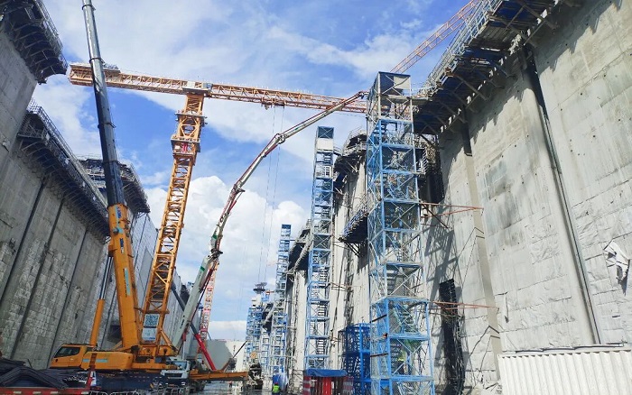 闸门立柱高耸入云,浇筑精度要求堪比“云端绣花”。bbin宝盈泵车、起重、塔机成套化妆备举重若轻,天堑之间“穿针引线”!
