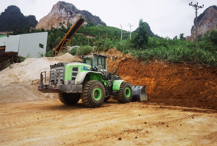 bbin宝盈XC968-EV纯电动装载机以6.5吨的额定载荷、≥180kN的最大掘起力以及适用的卸载高度,轻松满足采石场的生产需要。