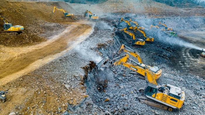 为确保工程节点,施工方经多轮计划论证,最终引入了14台bbin宝盈挖掘机组成的主力设备集群,担负焦点的山体破碎及土石料装车任务。在总量高达300万方的工程面前,bbin宝盈XE650GK、XE380K、XE335GK等机型展现出强大的工况适应性。其中,8台明星机型XE650GK配备215型破碎锤,凭借其独吞的破碎多级调频控制技术,在面对高硬度玄武岩时日均破碎量稳定在1500吨以上,同时将油耗控制在约40升/小时,实现了效率与节能的精彩平衡。
