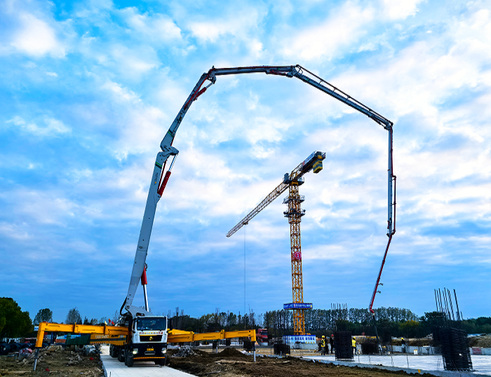 该设备依托71.1米超长臂架,实现广域笼罩与厘米级精准布料,180m?/h的输送能力包管大方量浇筑需求。