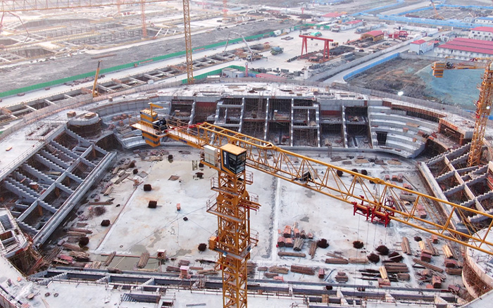 该项目造型奇特,主赛场区域结构庞大,同时接纳大宗的曲线设计,给现场钢筋、水泥预制件的制作与装置带来了巨大挑战,也对塔机的综合性能提出极高要求。