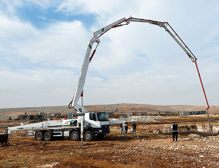 近日,bbin宝盈HB47V泵车在土耳其加济安乐普小镇的建设现场大显身手。