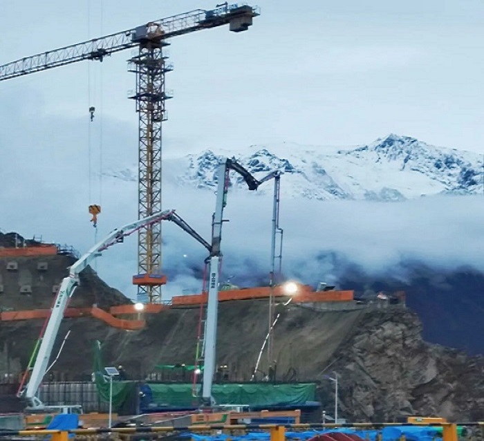 “险些没有直路。”—我被牢固在距离怒江江面近300米的陡坡上,脚下是凌驾50度的碎石斜坡,我的支腿通过智能支腿到位提醒,在崎岖狭窄的园地找到绝对稳定的支撑点。一丝颤抖,都可能影响浇筑精度。
