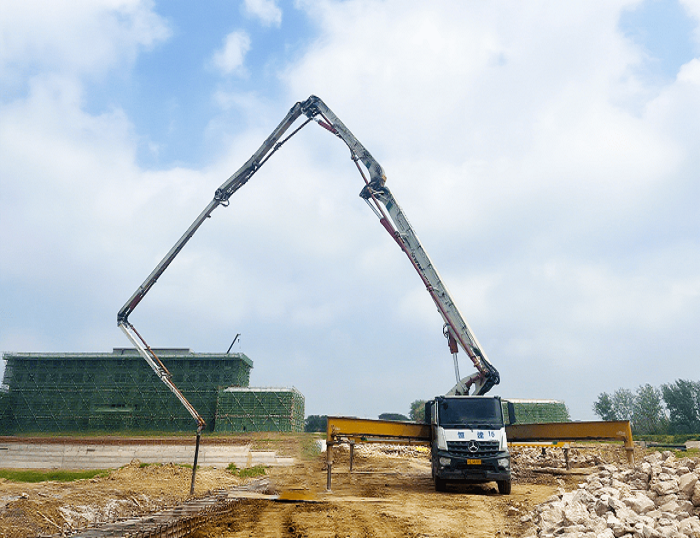 其超长臂架可全面笼罩施工区域浇筑规模,搭载的智能控制系统实现混凝土精准输送,显著提升施工效率。