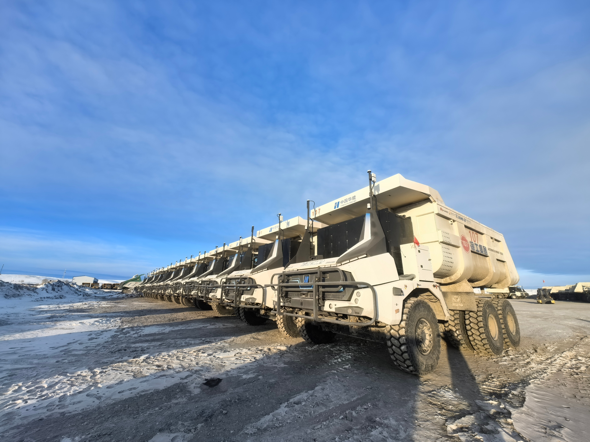 从夏日的绿草如茵到冬日的白雪皑皑,内蒙古华能伊敏露天矿的年均温差超60摄氏度。12月,气温已降至零下30多度,白雪笼罩的矿坑中,百台无人纯电矿卡正以“钢铁洪流”之势穿梭前行。