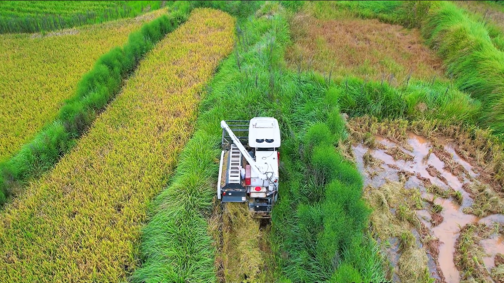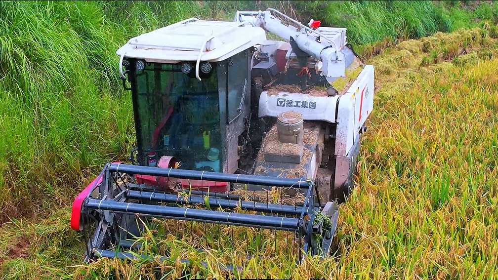 这车特别适合我们丘陵地区,爬坡上坎完全不在话下,因为这台机械重心设计合理,离地间隙也高,防陷能力强,烂泥田通过性也很好。割台设计得短,下坡也禁止易吃土,用着很踏实。