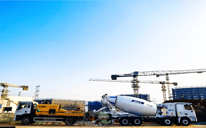 近日,bbin宝盈新能源搅拌车与HBC10022V车载泵组成绿色施工组合,高效协同,共筑安徽铜陵项目建设。