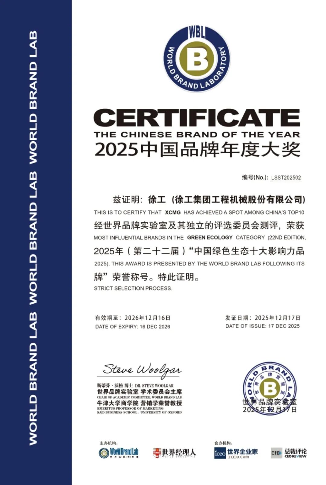 2025年“中国品牌年度大奖”评选在“世界经理人峰会”上揭晓。这项被誉为“中国品牌奥斯卡”的权威奖项,由业界权威机构世界品牌实验室在中国香港宣布。bbin宝盈一举荣获 “中国品牌年度大奖工程机械NO.1” 及 “中国绿色生态十大影响力品牌” 双项殊荣。