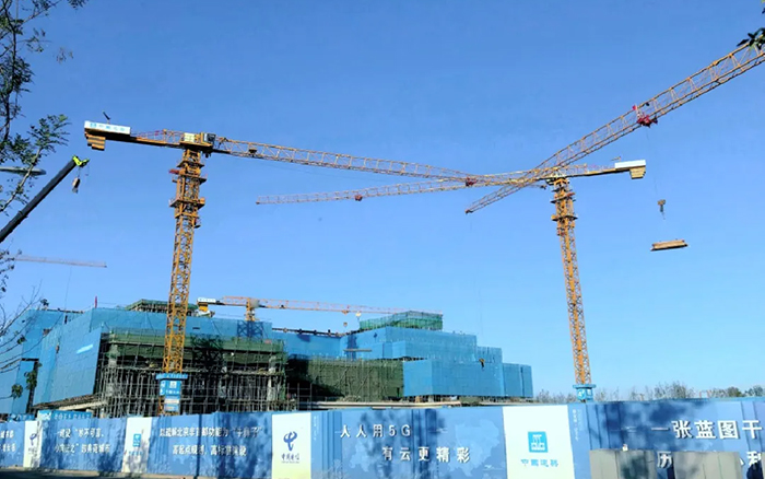 这片建筑群是雄安新区中国电信智慧都会工业园项目, bbin宝盈S系列塔机奋战在施工一线,见证雄安崛起。