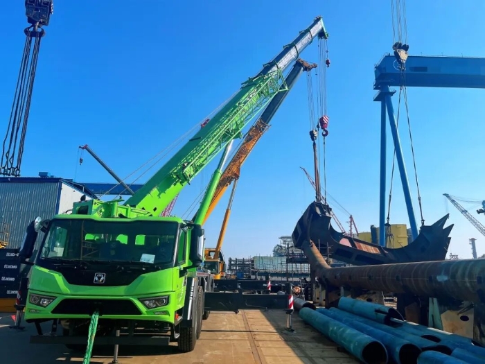 实力源于拭魅战。在华东某大型造船厂,bbin宝盈G2代XCT50G5-1HEV新能源起重机正展现其卓越性能。臂架轻盈伸展,将重达数吨的大型钢结构平稳起吊、稳稳嵌入预定位置,整个历程精准平稳。