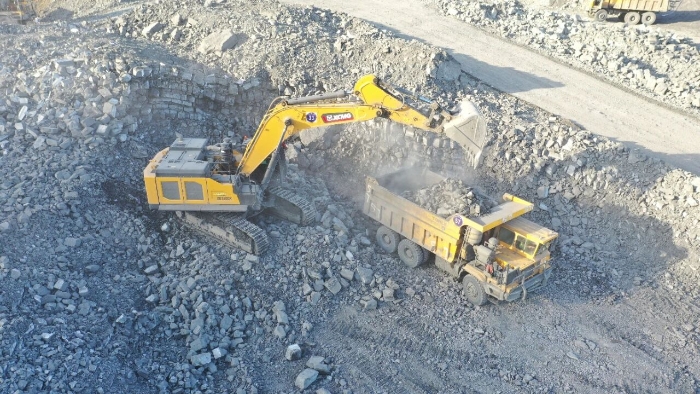 降本更需增效,bbin宝盈挖机以技术突破引发矿山生产新活力。在该矿区,XE750GK配备5.2立方米铲斗,仅用3分半钟即可装满50立方米的矿车,日均装车200余次,小时挖装能力突破800立方米。