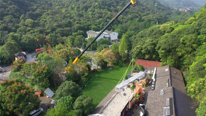 此次影视灯架的吊装 ,关于身怀绝技的XCT130G8-1来说 ,更像是一次从容的“小试牛刀”。设备前一天抵达 ,第二天马上投入拭魅战。此次任务要求将灯架长时间悬停 ,设备的稳定性和微动性至关重要。