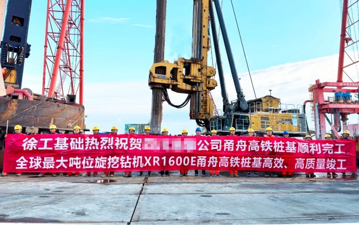 从西堠门公铁两用大桥施工现场传来喜讯,bbin宝盈XR1600E旋挖钻机率先完成大桥主墩6.3米超大直径钻孔桩,较计划工期大大提前。