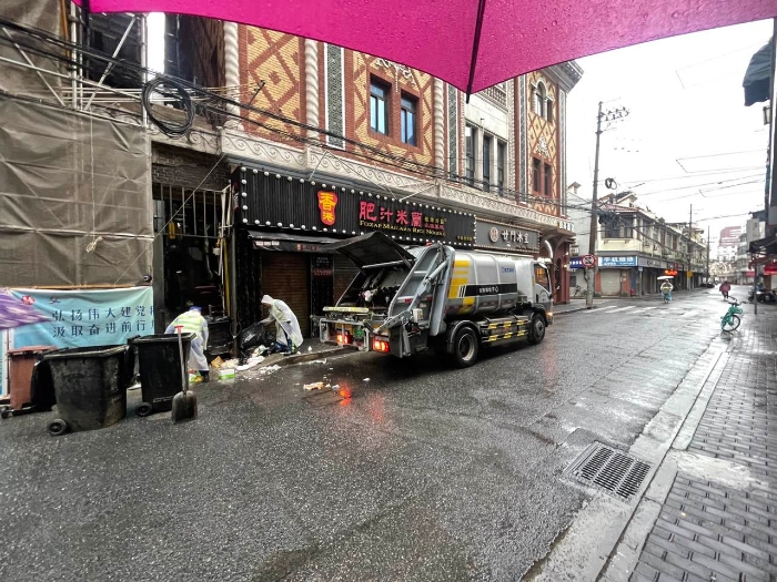 南京东路人流如织垃圾多?bbin宝盈XGH5120ZYSXBEV:轻松搞定!