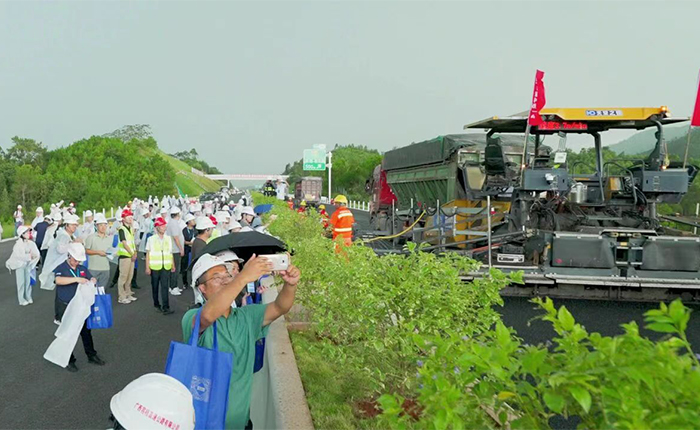 近日,在广西梧州举办的“第八届平安百年品质工程交流会”上,苍容高速展示了沥青路面无人化智能摊铺碾压集群施工技术。这是广西公路建设首次应用这一先进技术,标记着外地公路施工向智能化、无人化偏向迈出了重要一步。
