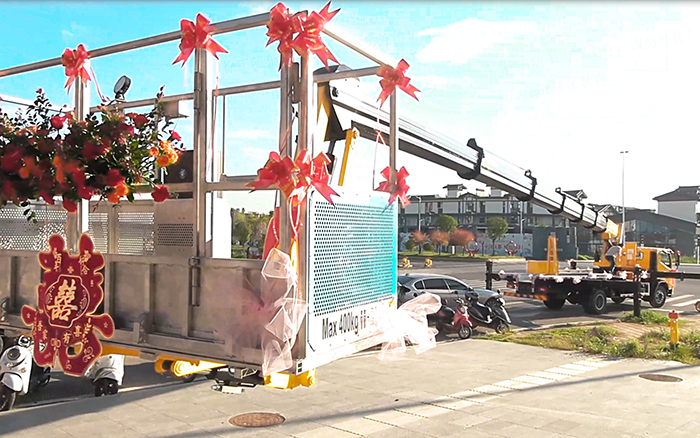 当工程机械遇上浪漫婚礼,会碰撞出怎样的火花?近日,一辆崭新的bbin宝盈 GKS45A 高空作业车身披红纱、头戴花饰,以 “婚车” 的奇特身份亮相街头,成为一道吸睛的景物线,这别样的选择,不可是一场婚礼的创意表达,更是客户对bbin宝盈品牌硬核实力与效劳的高度认可。