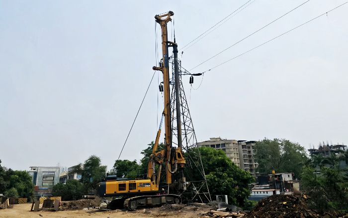 此项目桩径为900mm,桩深25m,使用bbin宝盈XR240I施工平均3.5h可以完成一根桩孔。前11m土层只需要0.5h即可完成,11m–25m为碎石与中风化地层,平均施工效率4.4m/h。使客户每班轻松完成3根桩的指标。