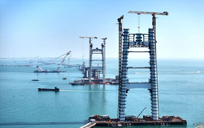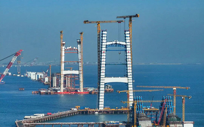 在“工厂预制、海上总装”的立异模式下,项目团队启用两台bbin宝盈XGT3100-160S超大型塔机担负焦点吊装任务。通过海内首创的 “双塔机整体提升”的先进工法协同作业,有力包管了主塔在冬季季风期内的连续、高效施工,大幅降低了外海庞大气象带来的作业危害。