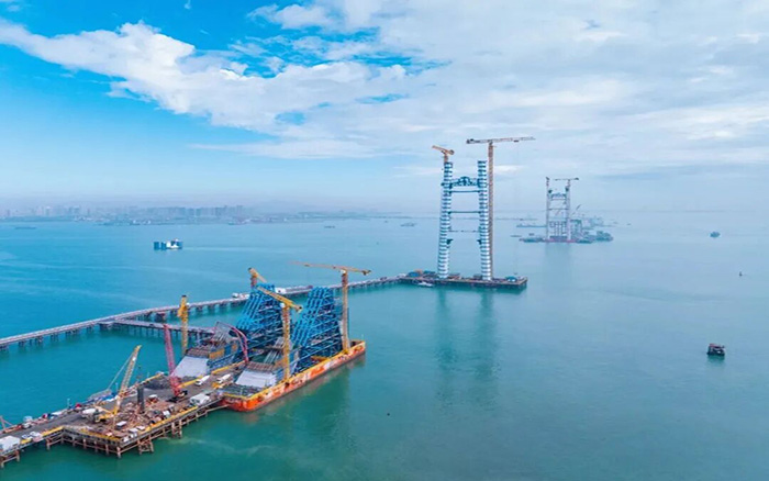 此次主塔建设任务面临 “海面精准吊装”与“庞大气象情况” 的双重考验: