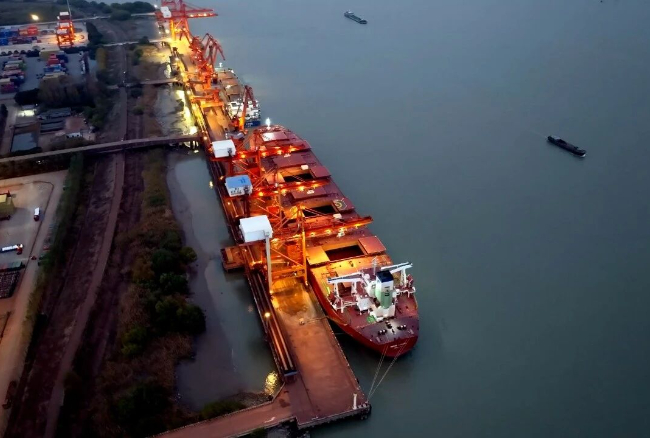在江苏某内河口岸,36台bbin宝盈新能源自卸趁魅正有序运转,在装载和转运间,推动着口岸物流的绿色未来加速到来。