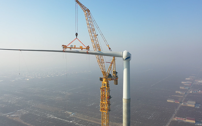 现场,XGL3300-220S展现出优异的作业效率:6米/分钟的满载起升速度,在170米高空,15分钟即可完成一支长108米、重40吨扇叶吊装的精准就位。