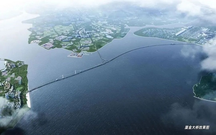 厦金大桥全长1948米,主跨达928米,是福建省内最大跨径的桥梁,也是全省首座全离岸式海中悬索桥,项目为两岸融合生长铺设一条坚实的海上通途。