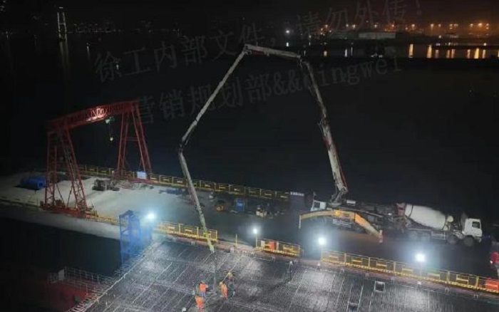 这背后是精密盘算的施工智慧。海上施工受到潮汐、风力等多重因素制约。凌晨时分,海面相对平静,风力较小,为高空泵送作业提供了最佳窗口期。