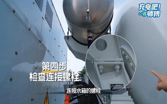 检查水箱上部连接水箱的螺栓以及减速机连接的螺栓是否松动,这是保命的要害 。螺栓若在松动之后,在行驶历程中,要紧急刹车,会造成直接砸向电池,这是一个很是重要的问题 。
