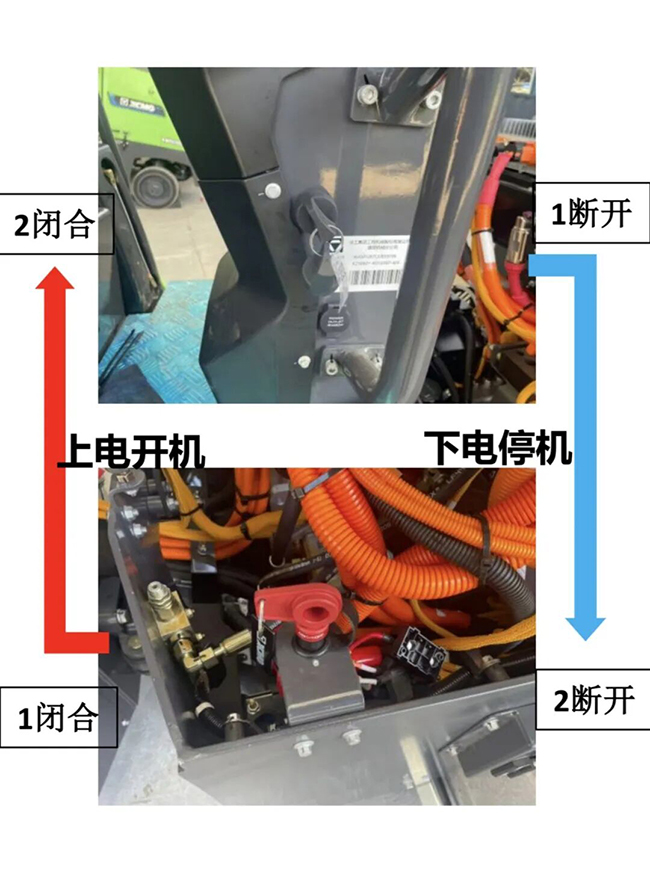 整机入库前应检查电池SOC并调解至60%~80%,严禁低于40%。入库前需清理外观灰尘、检查电气接口及高压电池包外观完好性。确认SOC区间后,断开蓄电池电源开关。