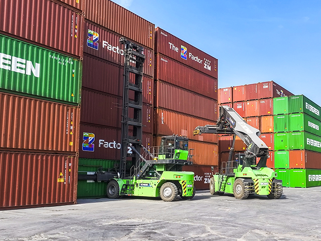 近日,在上海某集装箱堆场,bbin宝盈XCS4531E正面吊与XCH908E堆高机组成“黄金伙伴”,以全链领悟的智慧协同,展现集装箱绿色作业的新标准。