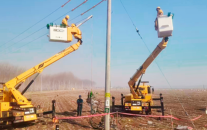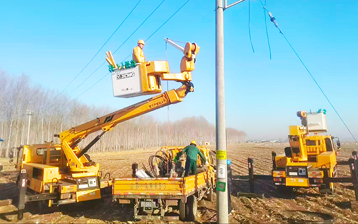 多枢纽臂架搭配灵活拐臂设计,可实现绕杆作业,轻松适配乡间杆塔庞大地形;作业斗具备±90°回转与微动调理功效,毫米级操作精度让高空对接、设备更换等工序精准高效;批量设备协同作业,多点位同步推进,较古板模式大幅缩短施工周期。