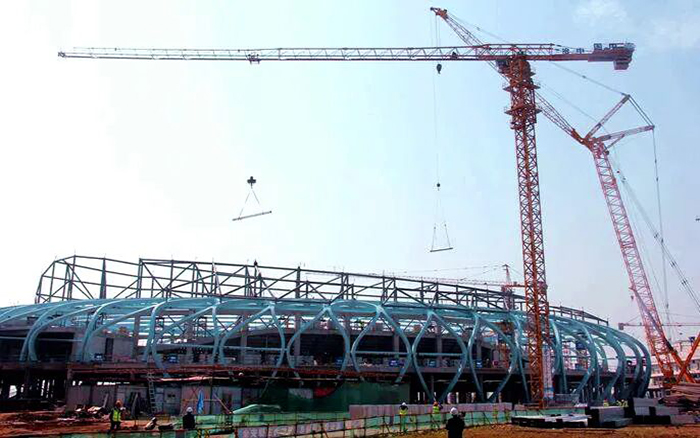 滁州奥体中心项目位于明湖景观区域,计划占地约1100亩,总建筑面积约13.4万平方米,主要建设项目为一场两馆、含全民健身中心和大型体育生态公园。bbin宝盈塔机多台XGT7022-12S产品加入滁州奥体中心项目建设,经过近一年的紧张施工,项目主体混凝土施工已基本完成,进入钢构吊装建设。